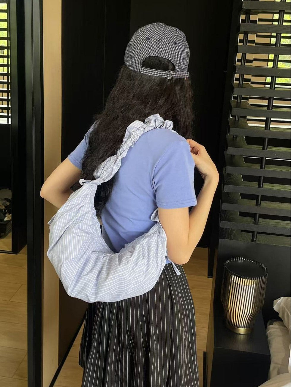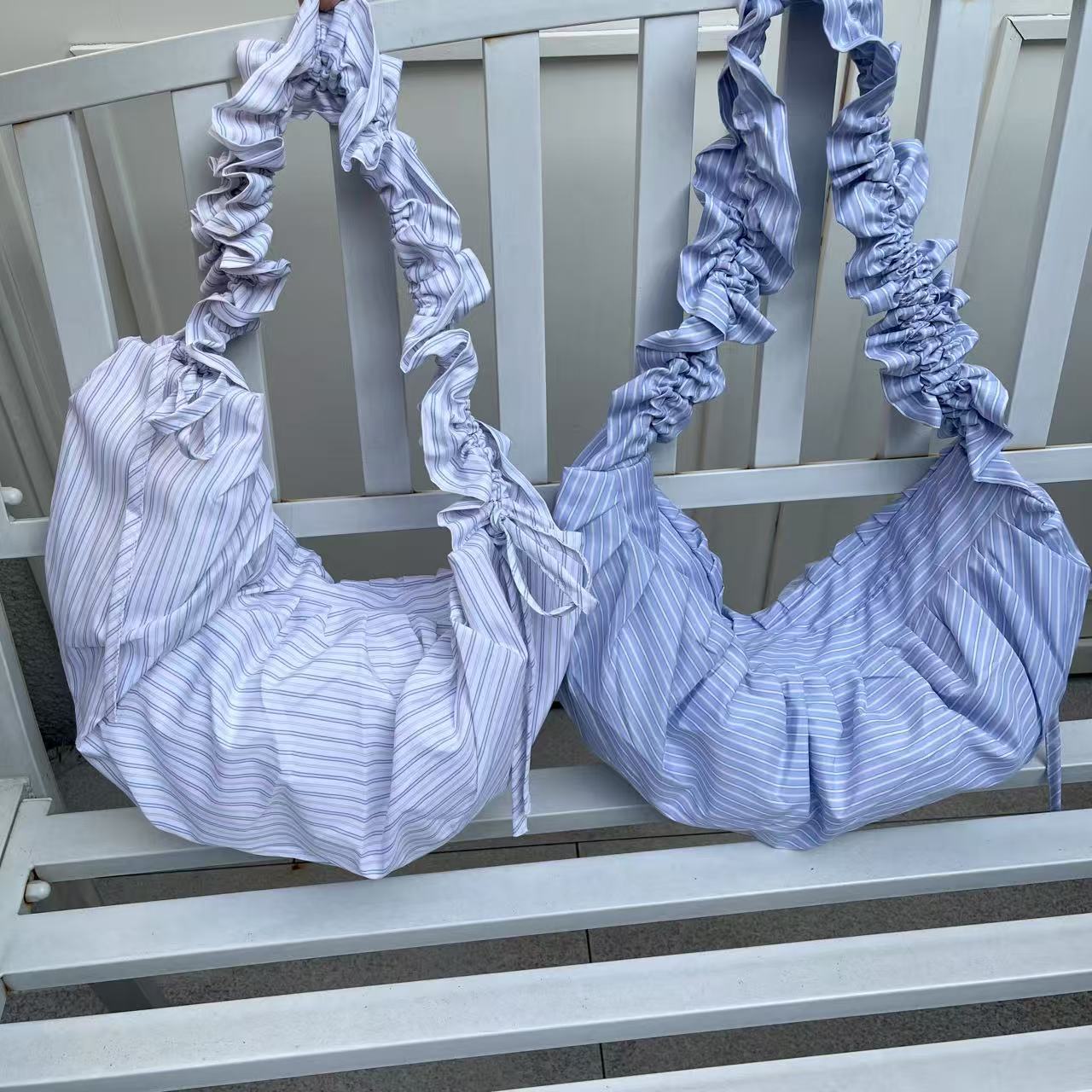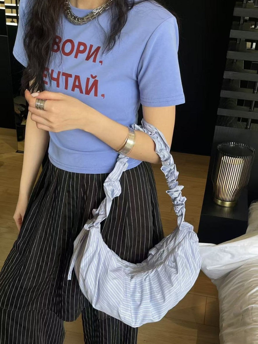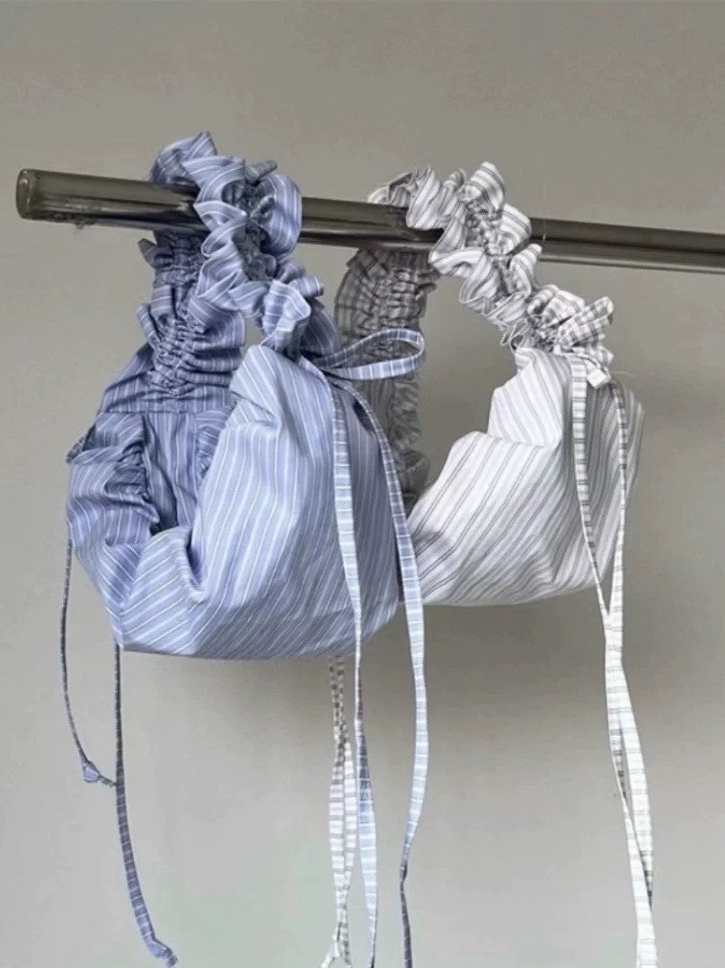 Striped Adjustable Shoulder Strap Pleated Drawstring Shoulder Bag Dumpling Bag Women's Casual Bag